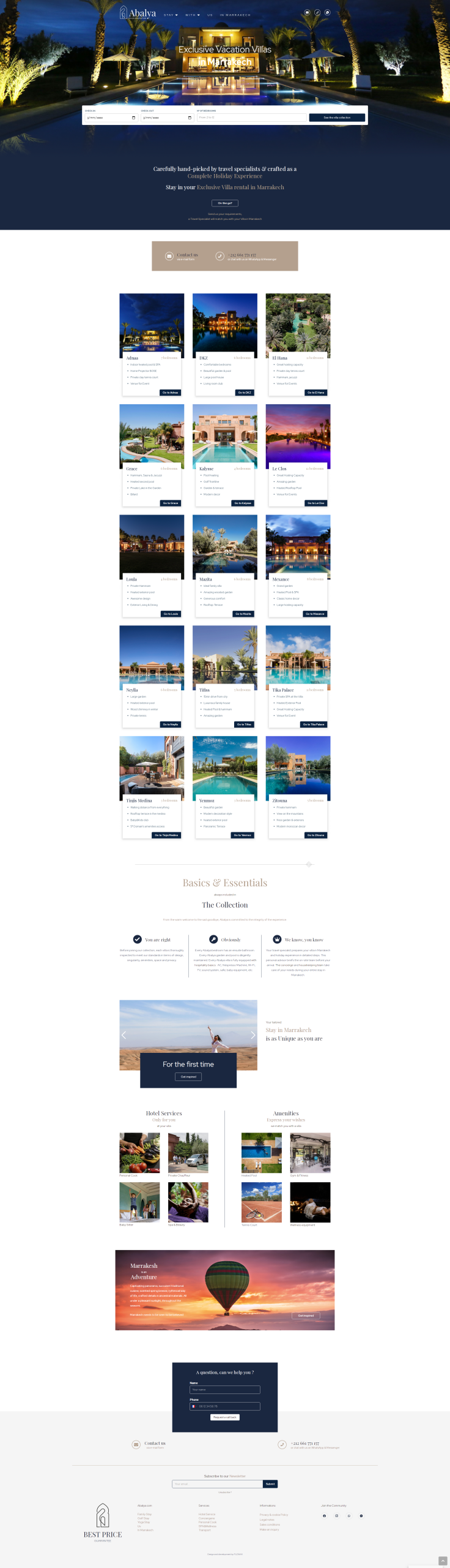 Depuis 2002, Abalya propose une sélection exclusive de Villas à Marrakech avec un service attentionné. Plus de 18 ans d’expériences : ça compte. Pour de prochaines vacances inoubliables, organisées sur-mesure pour vos amis et votre famille, Abalya sélectionne les plus belles villas de Marrakech.
