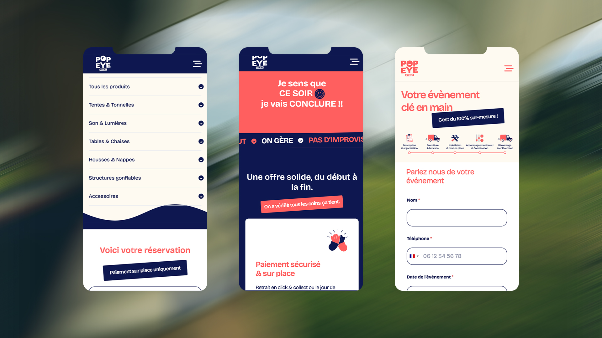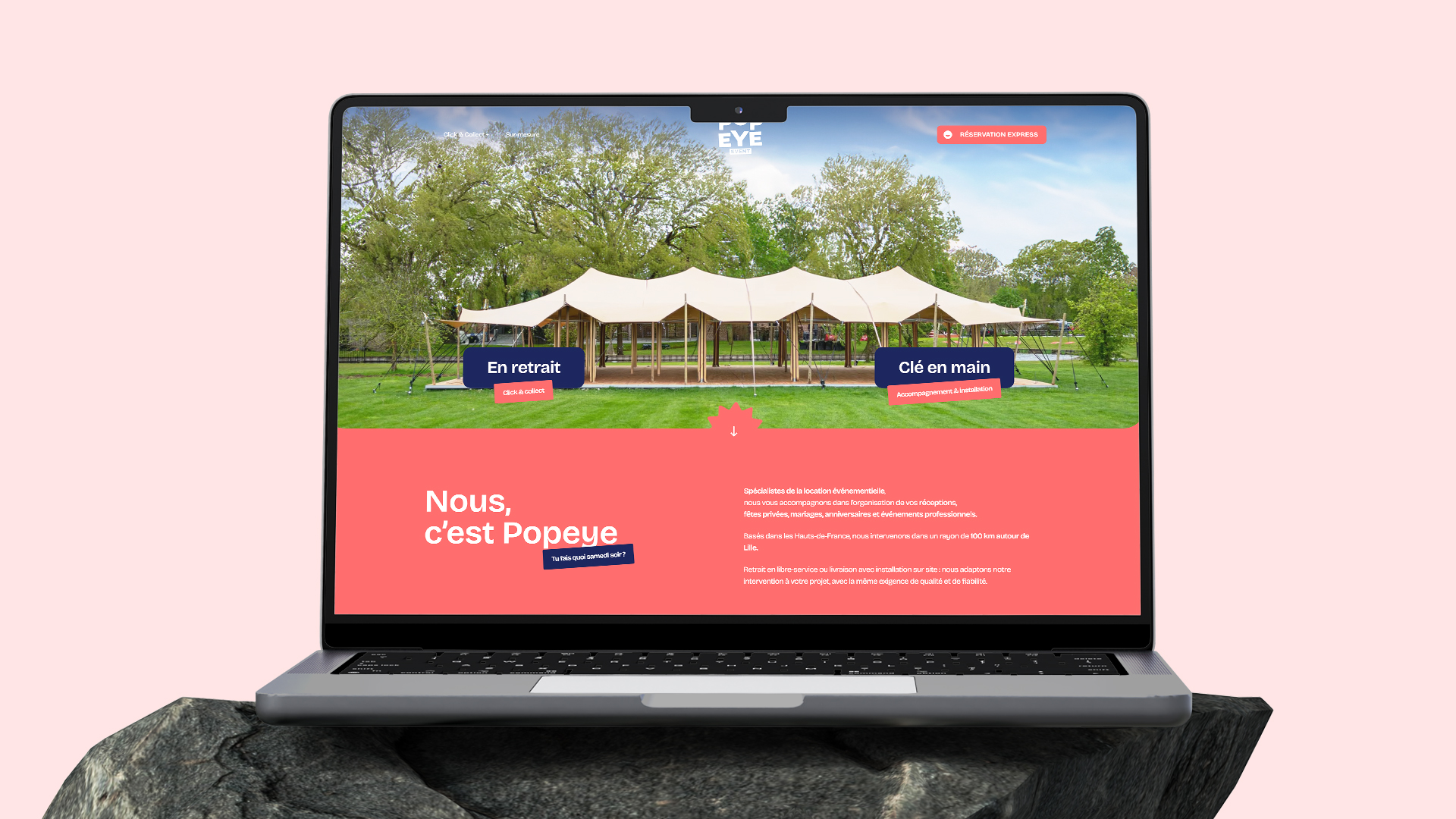 Spécialiste de la location événementielle dans la métropole lilloise, Popeye Event cultive une promesse de fiabilité décomplexée. FLOW44 a façonné sa direction artistique, son site web et sa papeterie pour ancrer une signature franche et identifiable.